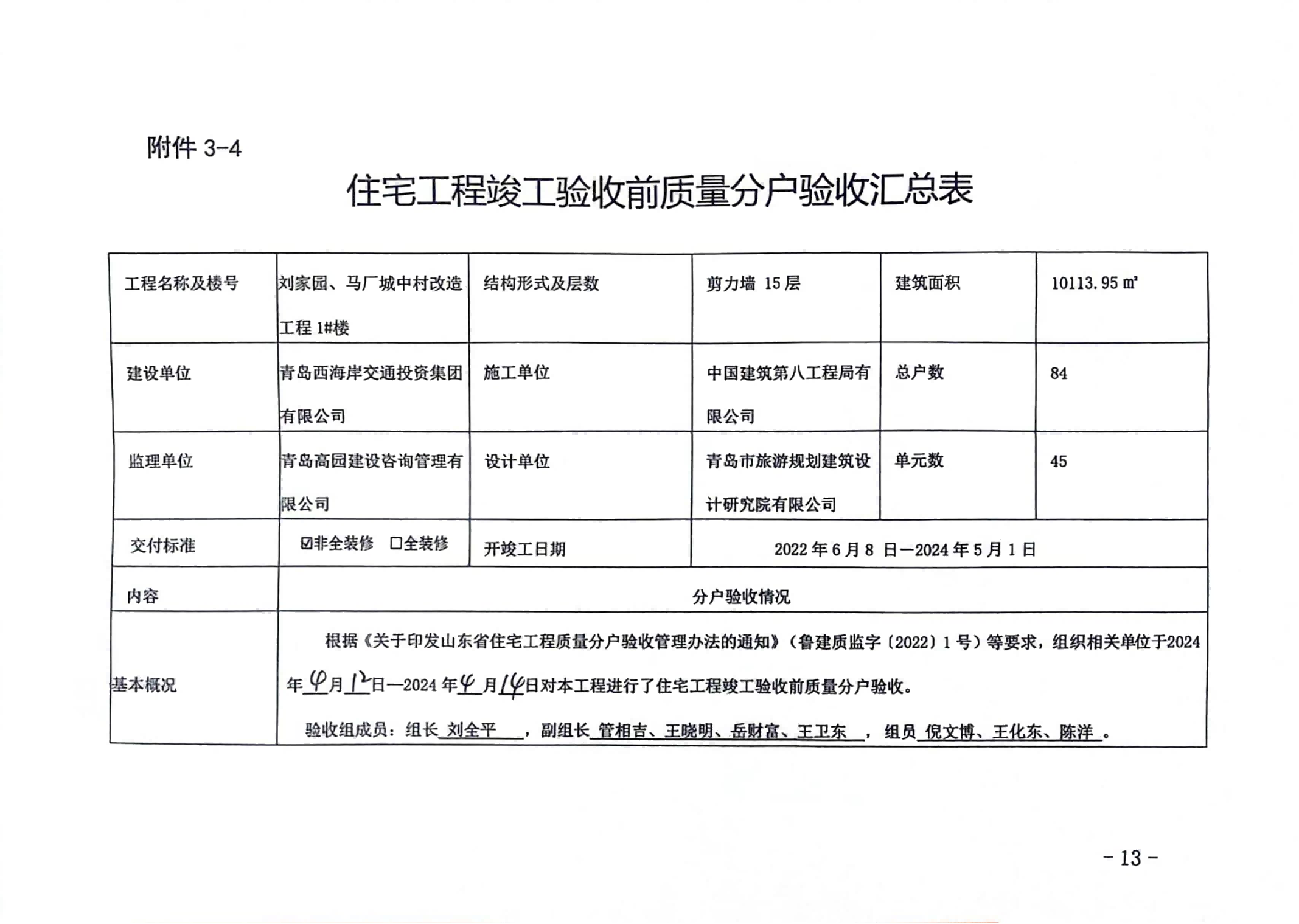 劉家園、馬廠城中村改造工程質(zhì)量信息公示
